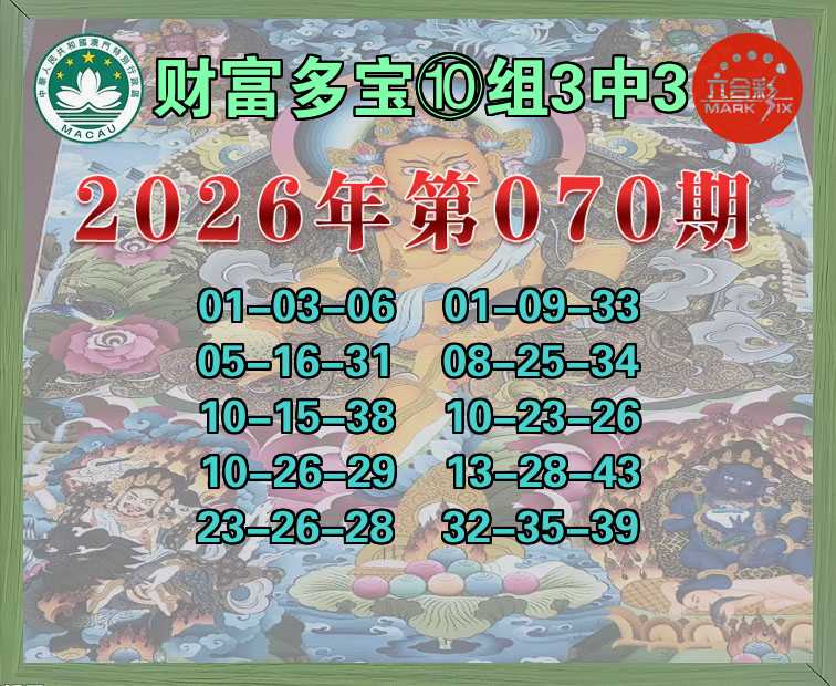 070期:《财富多宝》 🍁⑩组3中3🍁