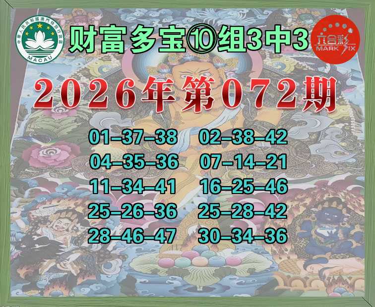 072期:《财富多宝》 🍁⑩组3中3🍁