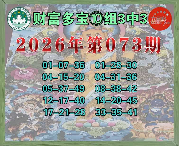 073期:《财富多宝》 🍁⑩组3中3🍁