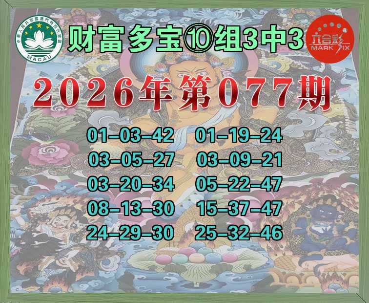 077期:《财富多宝》 🍁⑩组3中3🍁